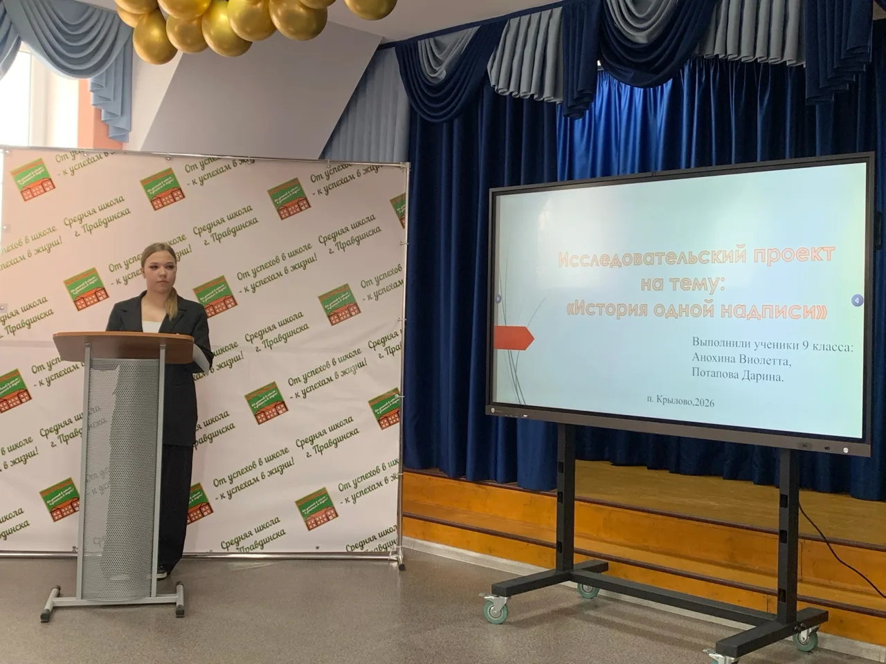 Юные исследователи истории  Янтарного края продемонстрировали свою любовь к местам, куда в послевоенное время прибыли их прабабушки и прадедушки, где сегодня живут их семьи. Крыловскую школу на конференции представляли ученица 10 класса Спецакова Дарья с работой о своей семье и ученицы 9б класса Анохина Виолетта и Потапова Дарина с работой о памятном месте в посёлке Мозырь.